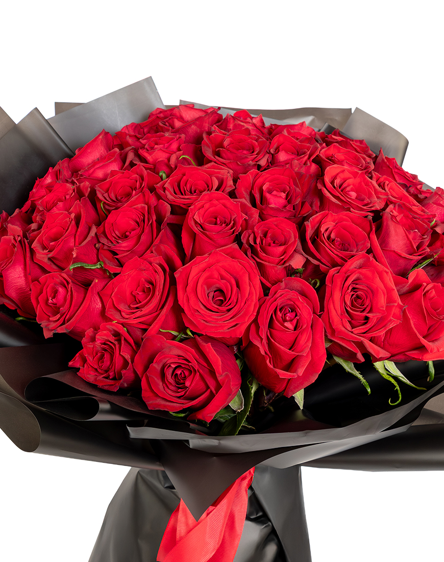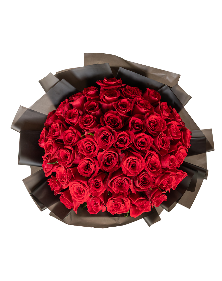 This Valentine's Day rose bouquet is designed for bold expressions of love with lush red roses.