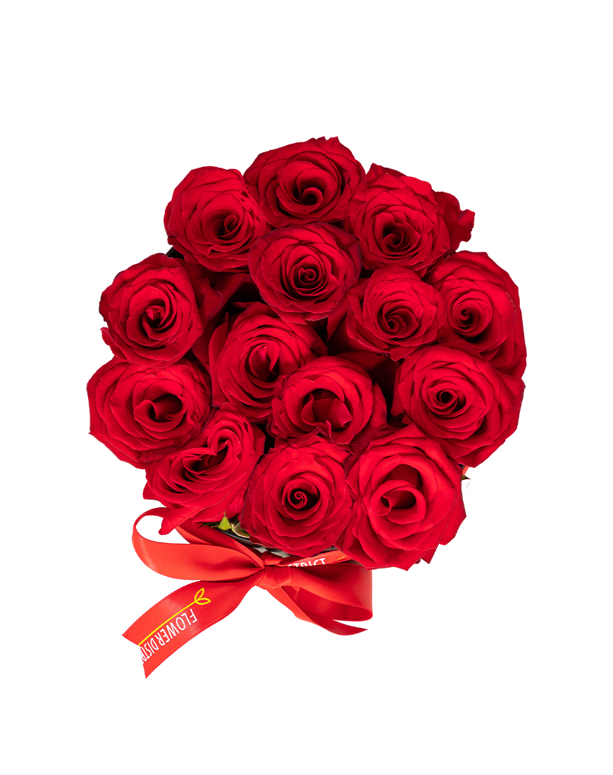 Simple yet deeply romantic, this Valentine's Day flower box showcases red roses arranged in a compact round box.