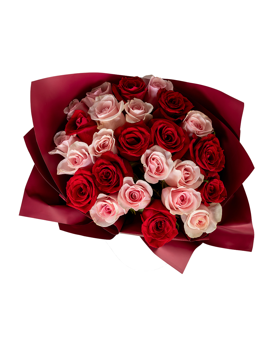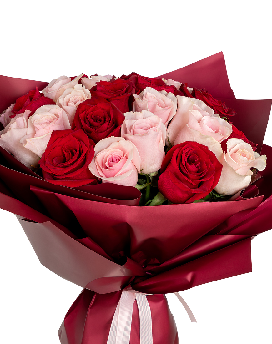 This Valentine's Day rose bouquet blends bold red roses with soft pink roses.