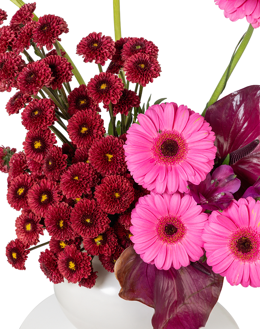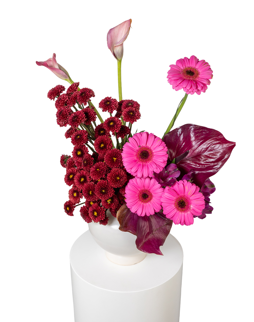 Designed for vibrant Eid celebrations, this Large floral vase blends bold Gerbera, elegant Calla Lily, rich Anthurium and fresh Alstroemeria with Chrysanthemum accents. A balanced and eye-catching arrangement crafted to enhance festive décor and refined gifting.