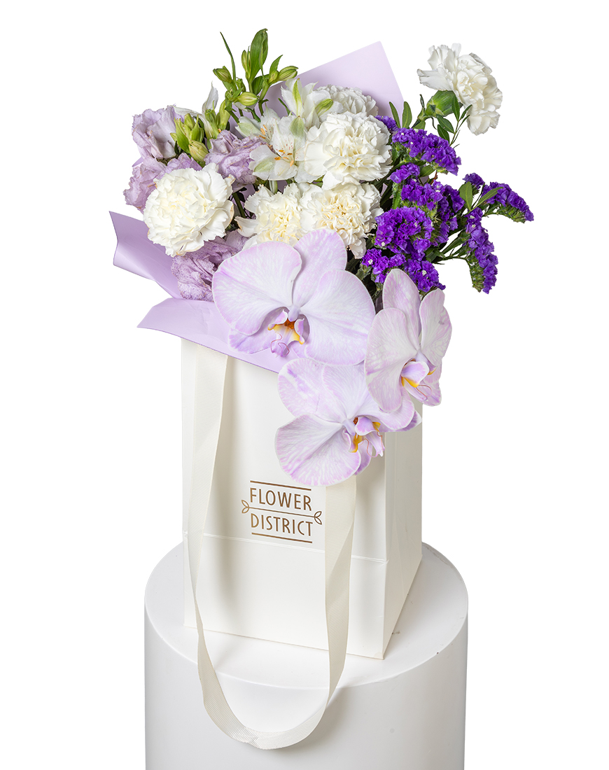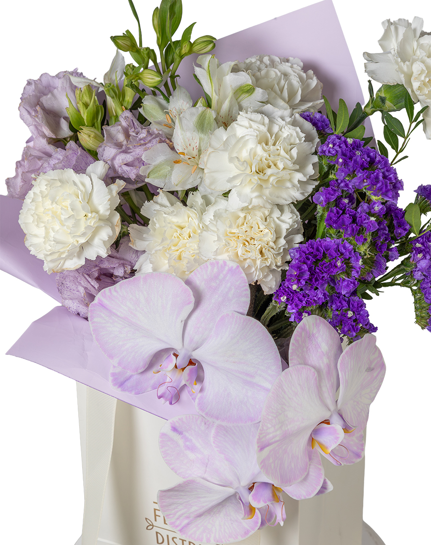 This Large Eid floral arrangement combines soft Lisianthus, Carnations, Alstroemeria and Statice with a graceful Phalaenopsis Orchid. Crafted in a delicate pastel palette, it reflects warmth, celebration and refined elegance, making it ideal for Eid gifting and stylish décor.