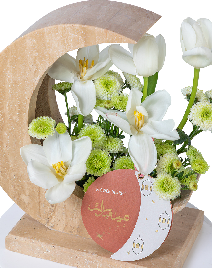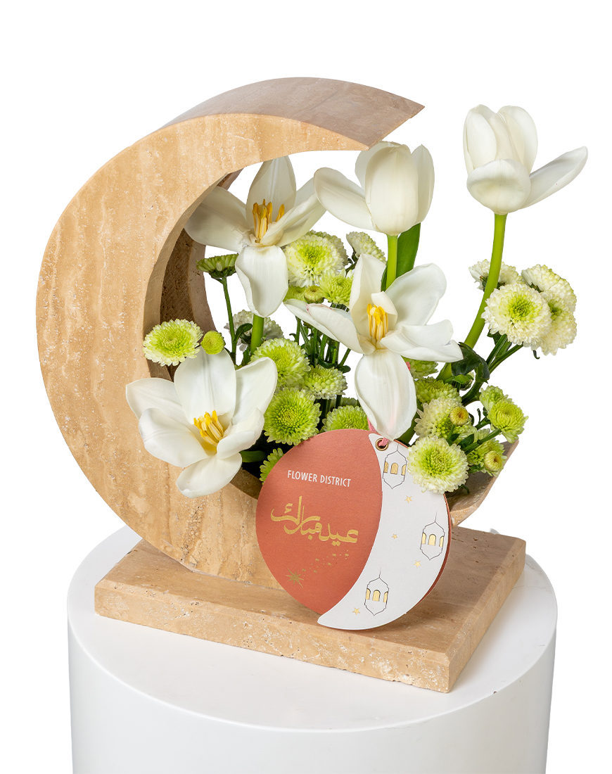 DescriptionDesigned in a decorative marble moon base inspired by Eid symbolism, this Large arrangement features elegant Tulips and fresh Chrysanthemum sprays. A minimal yet striking festive composition crafted to enhance Eid décor and refined gifting moments.Reviews0Disclaimer Back Designed in a decorative marble moon base inspired by Eid symbolism, this Large arrangement features elegant Tulips and fresh Chrysanthemum sprays. A minimal yet striking festive composition crafted to enhance Eid décor and refined gifting moments. Write a review There are no reviews yet If a flower shown is unavailable, we will replace it with one of equal or greater value, keeping the style and color as close as possible. As flowers are natural products, slight variations in color may occur. Free Shipping Cash On Delivery Money Back Guarantee 24/7 Support Related products Soft Serenity Bouquet 347 AED Shop Now Season’s Bloom Bouquet 550 AED Shop Now 101 Athena Bouquet 1045 AED Shop Now Rustic Meadow Bouquet 605 AED Shop Now Pure Serenity Bouquet 540 AED Shop Now Blossom Odyssey Bouquet 530 AED Shop Now Wildflower Bliss Bouquet 473 AED Shop Now Pastel Reverie Bouquet 480 AED Shop Now Velvet Petals Bouquet 425 AED Shop Now Timeless Grace Bouquet 420 AED Shop Now Celestial Garden Bouquet 500 AED Shop Now Mystic Bouquet 384 AED Shop Now White Elegance Bouquet 294 AED Shop Now Eternal Elegance Vase 850 AED Shop Now Crystal Grace Vase 400 AED Shop Now Diamond Dewdrop Vase 390 AED Shop Now Petal Prosperity Tray 250 AED Shop Now Royal Treasure Holder 630 AED Shop Now Regal Bloom Tray 210 AED Shop Now Zen Blossom Tray 240 AED Shop Now Blossom Cascade Vase 510 AED Shop Now Lively Hues Vase 583 AED Shop Now Elegant Flourish Vase 478 AED Shop Now Blooming Grace Vase 441 AED Shop Now Moonlit Blooms Vase 504 AED Shop Now Petal Symphony Vase 456 AED Shop Now Blossom Reverie Vase 357 AED Shop Now Violet Dreams Money Arrangement 271 AED Shop Now Wealth In Bloom Box 310 AED Shop Now Purple Majesty Tray 258 AED Shop Now Riches Blossom Oval Tray 452 AED Shop Now Newborn Petal Paradise 411 AED Shop Now Birthday Fantasy Arrangement 399 AED Shop Now Blossom Bliss 410 AED Shop Now Double Amaryllis Vase 331 AED Shop Now Graduation Pride 336 AED Shop Now Achievement Arrangement 357 AED Shop Now Milestone Masterpiece 452 AED Shop Now Birthday Bliss Blooms Tray 368 AED Shop Now Graduation Gala Blossoms Vase 441 AED Shop Now Blissful Blooms Ensemble Tray 410 AED Shop Now Satchel Of Blooms 725 AED Shop Now Floral Carryall Bag 615 AED Shop Now Harmony In Bloom 410 AED Shop Now Gerbera Acrylic Bag 578 AED Shop Now Cymbidium Gift Money Tray 399 AED Shop Now Summer Leather Box 504 AED Shop Now Anthurium Pink Vase 473 AED Shop Now Garden Spray Rose In Glass Tray 1103 AED Shop Now Mix Purple Hydrangea 378 AED Shop Now Neutral Comfort 294 AED Shop Now Tequila Mixed 420 AED Shop Now Friendly Passion 347 AED Shop Now Lady Boombastic 341 AED Shop Now Purple Sensation 320 AED Shop Now Purple Delight 368 AED Shop Now Enduring Love 415 AED Shop Now Large Rosettes 368 AED Shop Now Magical Bloom 263 AED Shop Now Whimsy 294 AED Shop Now Spring Collection Bouquets 400 AED Shop Now Luminous Rosemary 273 AED Shop Now Elegant Victory Enkel 284 AED Shop Now Majestic Julischka 347 AED Shop Now Royal Purple 347 AED Shop Now Esperance Touch 263 AED Shop Now Tender Peach 263 AED Shop Now Dazzle 315 AED Shop Now Delicate Salinero 310 AED Shop Now Modest Sweet Sara 263 AED Shop Now Lily Of Devotion 368 AED Shop Now Rose Yellow Bouquet 263 AED Shop Now Spray Rose Blush Pink Bouquet 693 AED Shop Now Sunflower Bouquet 404 AED Shop Now Hydrangea White Vase 525 AED Shop Now Gerbera Pink Bouquet 473 AED Shop Now Pink Blossom Rose Bouquet 420 AED Shop Now Get Well Soon Flower Vase 420 AED Shop Now Congratulation Flower Arrangement 473 AED Shop Now Elegant Calla Blooms Bouquet 683 AED Shop Now Sunny Blooms Bouquet 297 AED Shop Now Crystal White Garden Bouquet 347 AED Shop Now Color Burst Bouquet 368 AED Shop Now Pastel Garden Bliss Bouquet 252 AED Shop Now Sunset Glow Bouquet 368 AED Shop Now Elegant Serenity Vase Arrangement 452 AED Shop Now Timeless Elegance Vase Arrangement 452 AED Shop Now Elegant Embrace 289 AED Shop Now Petal Perfection 213 AED Shop Now Julietta Bouquet 294 AED Shop Now Enchanted Garden Rose Bouquet 336 AED Shop Now Spring Serenade Bouquet 294 AED Shop Now Rose Blue Bouquet 473 AED Shop Now Garden Elegance Bouquet 389 AED Shop Now Blossoming Love Bouquet 378 AED Shop Now Lilac Flowers Bouquet 399 AED Shop Now Oriental Lily Bouquet 368 AED Shop Now Hydrangea Blue Bouquet 410 AED Shop Now Eustoma Pink Vase 368 AED Shop Now Carnation And Gerbera Vase 400 AED Shop Now Rose Lilies Vase 368 AED Shop Now Eustoma Purple White Vase 231 AED Shop Now Tower Arrangement Vase 295 AED Shop Now Mixed Flower Vase 505 AED Shop Now Gerbera And Tulip Vase 400 AED Shop Now Antirrhinum White Vase 378 AED Shop Now Delphinium And Hydrangea Purple Vase 475 AED Shop Now Gerbera White And Yellow Vase 475 AED Shop Now Delphinium and Gerbera Vase 400 AED Shop Now Gerbera Orange Vase 410 AED Shop Now Book Vase Tulip 399 AED Shop Now Book Vase Anthurium 399 AED Shop Now Acrylic Hang bag Ecuador Quicksand Rose 368 AED Shop Now Acrylic Hang Bag Ecuador Orange Rose 368 AED Shop Now Acrlic Hang bag Tulips Liberstar 441 AED Shop Now Leather Tray Wall Design Arrangement 399 AED Shop Now Holland Hydrangeas Mix Bouquets 336 AED Shop Now Anthurium Pink Bouquet 452 AED Shop Now Classic White Bouquet 305 AED Shop Now Cymbidium Green Bouquet 441 AED Shop Now Peony Flower Vase 368 AED Shop Now Phalaenopsis Flower Vase 504 AED Shop Now Gerbera Cream Bouquet 431 AED Shop Now Rose Light Pink Bouquet 347 AED Shop Now Allium Flower Vase 350 AED Shop Now Flowers Bouquets - Gerbera Pink 368 AED Shop Now Flowers Bouquets - Hydrangea White 305 AED Shop Now Flowers Bouquets - Hydrangea Blue 336 AED Shop Now Rose Fuchsia Bouquet 336 AED Shop Now Luxury Pink Roses 473 AED Shop Now Luxury Yellow Roses