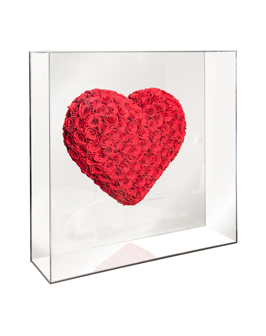 Eternal Heart Valentine Special Preserved Flower Arrangement is designed to celebrate love that lasts beyond the moment. Made entirely with preserved red roses and enclosed in a clear acrylic display, this arrangement maintains its beauty for years without maintenance, making it a timeless Valentine gift and keepsake.