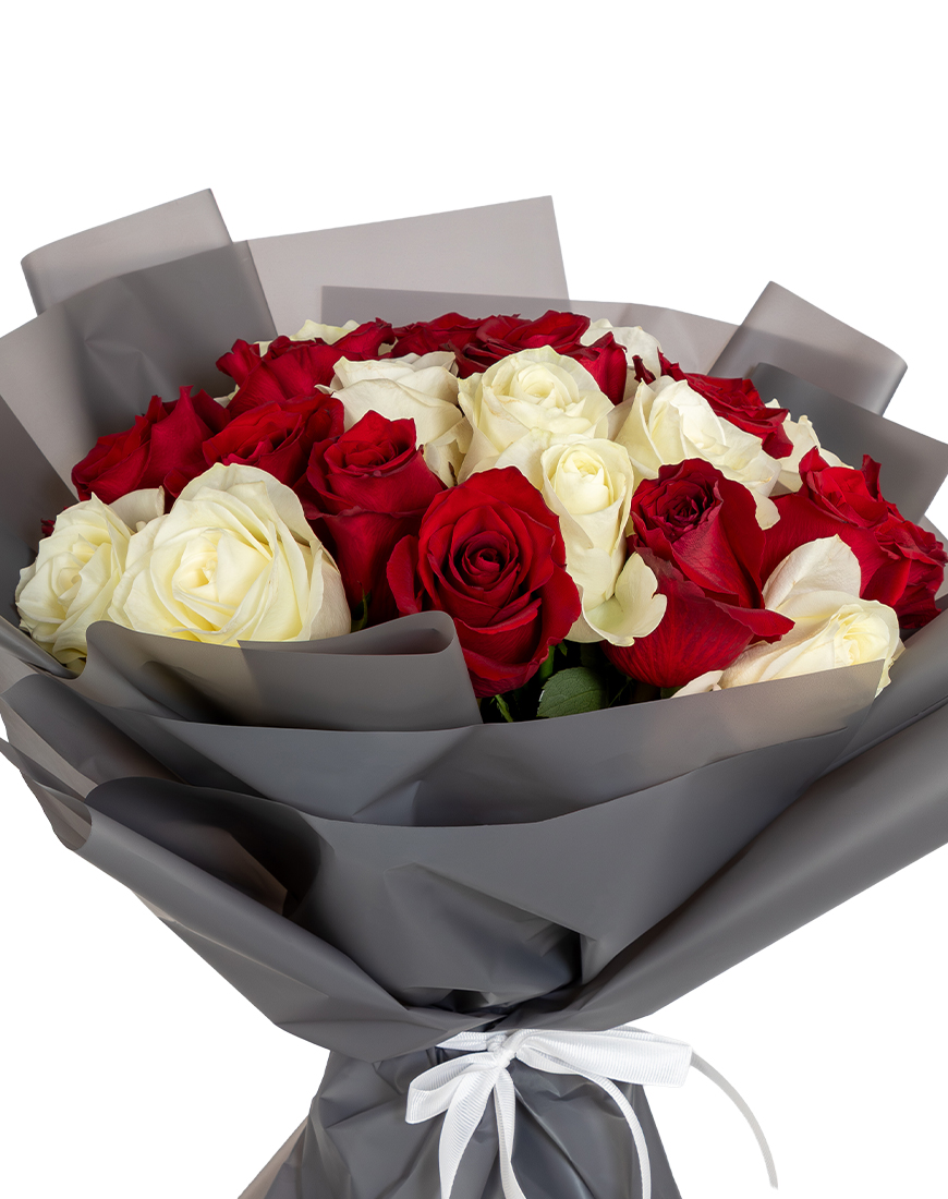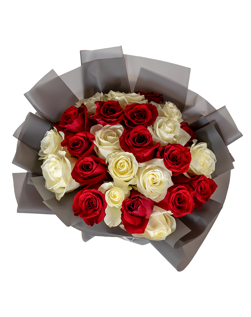 Designed to express warmth and emotion, this Valentine's Day bouquet blends red roses with white roses.