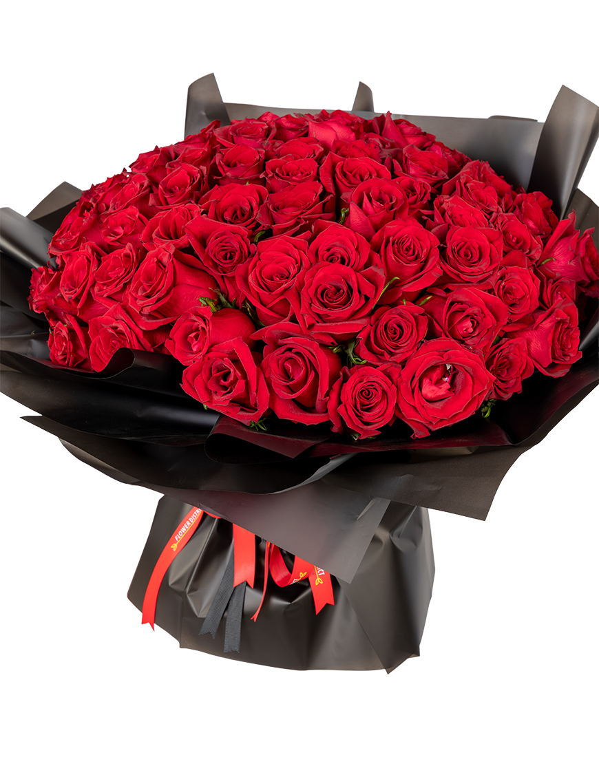 Created for unforgettable Valentine's Day moments, this grand rose bouquet showcases a luxurious display of red roses.