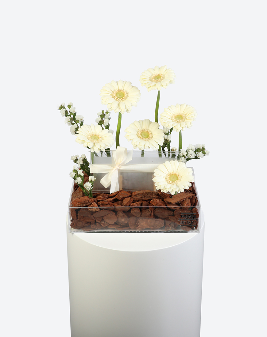 DescriptionThe Pure Grace Small Acrylic Tray with Money Box radiates minimalistic beauty. Soft white gerberas complemented by subtle touches of static create a refined and elegant arrangement. Ideal for thoughtful gifting, weddings, or graceful home décor.Reviews0Disclaimer Back The Pure Grace Small Acrylic Tray with Money Box radiates minimalistic beauty. Soft white gerberas complemented by subtle touches of static create a refined and elegant arrangement. Ideal for thoughtful gifting, weddings, or graceful home décor. Write a review There are no reviews yet If a flower shown is unavailable, we will replace it with one of equal or greater value, keeping the style and color as close as possible. As flowers are natural products, slight variations in color may occur. Free Shipping Cash On Delivery Money Back Guarantee 24/7 Support Related products sale - 14 % Soft Serenity Bouquet 297 AED 347 AED Shop Now sale - 9 % Season’s Bloom Bouquet 500 AED 550 AED Shop Now sale - 5 % 101 Athena Bouquet 995 AED 1045 AED Shop Now sale - 8 % Rustic Meadow Bouquet 555 AED 605 AED Shop Now sale - 9 % Pure Serenity Bouquet 490 AED 540 AED Shop Now sale - 9 % Blossom Odyssey Bouquet 480 AED 530 AED Shop Now sale - 11 % Wildflower Bliss Bouquet 423 AED 473 AED Shop Now sale - 10 % Pastel Reverie Bouquet 430 AED 480 AED Shop Now sale - 12 % Velvet Petals Bouquet 375 AED 425 AED Shop Now sale - 12 % Timeless Grace Bouquet 370 AED 420 AED Shop Now sale - 10 % Celestial Garden Bouquet 450 AED 500 AED Shop Now sale - 13 % Mystic Bouquet 334 AED 384 AED Shop Now sale - 17 % White Elegance Bouquet 244 AED 294 AED Shop Now sale - 6 % Eternal Elegance Vase 800 AED 850 AED Shop Now sale - 13 % Crystal Grace Vase 350 AED 400 AED Shop Now sale - 13 % Diamond Dewdrop Vase 340 AED 390 AED Shop Now sale - 20 % Petal Prosperity Tray 200 AED 250 AED Shop Now sale - 8 % Royal Treasure Holder 580 AED 630 AED Shop Now sale - 24 % Regal Bloom Tray 160 AED 210 AED Shop Now sale - 21 % Zen Blossom Tray 190 AED 240 AED Shop Now sale - 10 % Blossom Cascade Vase 460 AED 510 AED Shop Now sale - 9 % Lively Hues Vase 533 AED 583 AED Shop Now sale - 10 % Elegant Flourish Vase 428 AED 478 AED Shop Now sale - 11 % Blooming Grace Vase 391 AED 441 AED Shop Now sale - 10 % Moonlit Blooms Vase 454 AED 504 AED Shop Now sale - 11 % Petal Symphony Vase 406 AED 456 AED Shop Now sale - 14 % Blossom Reverie Vase 307 AED 357 AED Shop Now sale - 18 % Violet Dreams Money Arrangement 221 AED 271 AED Shop Now sale - 16 % Wealth In Bloom Box 260 AED 310 AED Shop Now sale - 19 % Purple Majesty Tray 208 AED 258 AED Shop Now sale - 11 % Riches Blossom Oval Tray 402 AED 452 AED Shop Now sale - 12 % Newborn Petal Paradise 361 AED 411 AED Shop Now sale - 13 % Birthday Fantasy Arrangement 349 AED 399 AED Shop Now sale - 12 % Blossom Bliss 360 AED 410 AED Shop Now sale - 15 % Double Amaryllis Vase 281 AED 331 AED Shop Now sale - 15 % Graduation Pride 286 AED 336 AED Shop Now sale - 14 % Achievement Arrangement 307 AED 357 AED Shop Now sale - 11 % Milestone Masterpiece 402 AED 452 AED Shop Now sale - 14 % Birthday Bliss Blooms Tray 318 AED 368 AED Shop Now sale - 11 % Graduation Gala Blossoms Vase 391 AED 441 AED Shop Now sale - 12 % Blissful Blooms Ensemble Tray 360 AED 410 AED Shop Now sale - 7 % Satchel Of Blooms 675 AED 725 AED Shop Now sale - 8 % Floral Carryall Bag 565 AED 615 AED Shop Now sale - 12 % Harmony In Bloom 360 AED 410 AED Shop Now sale - 9 % Gerbera Acrylic Bag 528 AED 578 AED Shop Now sale - 13 % Cymbidium Gift Money Tray 349 AED 399 AED Shop Now sale - 10 % Summer Leather Box 454 AED 504 AED Shop Now sale - 11 % Anthurium Pink Vase 423 AED 473 AED Shop Now sale - 5 % Garden Spray Rose In Glass Tray 1053 AED 1103 AED Shop Now sale - 13 % Mix Purple Hydrangea 328 AED 378 AED Shop Now sale - 17 % Neutral Comfort 244 AED 294 AED Shop Now sale - 12 % Tequila Mixed 370 AED 420 AED Shop Now sale - 14 % Friendly Passion 297 AED 347 AED Shop Now sale - 15 % Lady Boombastic 291 AED 341 AED Shop Now sale - 16 % Purple Sensation 270 AED 320 AED Shop Now sale - 14 % Purple Delight 318 AED 368 AED Shop Now sale - 12 % Enduring Love 365 AED 415 AED Shop Now sale - 14 % Large Rosettes 318 AED 368 AED Shop Now sale - 19 % Magical Bloom 213 AED 263 AED Shop Now sale - 17 % Whimsy 244 AED 294 AED Shop Now sale - 13 % Spring Collection Bouquets 350 AED 400 AED Shop Now sale - 18 % Luminous Rosemary 223 AED 273 AED Shop Now sale - 18 % Elegant Victory Enkel 234 AED 284 AED Shop Now sale - 14 % Majestic Julischka 297 AED 347 AED Shop Now sale - 14 % Royal Purple 297 AED 347 AED Shop Now sale - 19 % Esperance Touch 213 AED 263 AED Shop Now sale - 19 % Tender Peach 213 AED 263 AED Shop Now sale - 16 % Dazzle 265 AED 315 AED Shop Now sale - 16 % Delicate Salinero 260 AED 310 AED Shop Now sale - 19 % Modest Sweet Sara 213 AED 263 AED Shop Now sale - 14 % Lily Of Devotion 318 AED 368 AED Shop Now sale - 19 % Rose Yellow Bouquet 213 AED 263 AED Shop Now sale - 7 % Spray Rose Blush Pink Bouquet 643 AED 693 AED Shop Now sale - 12 % Sunflower Bouquet 354 AED 404 AED Shop Now sale - 10 % Hydrangea White Vase 475 AED 525 AED Shop Now sale - 11 % Gerbera Pink Bouquet 423 AED 473 AED Shop Now sale - 12 % Pink Blossom Rose Bouquet 370 AED 420 AED Shop Now sale - 12 % Get Well Soon Flower Vase 370 AED 420 AED Shop Now sale - 11 % Congratulation Flower Arrangement 423 AED 473 AED Shop Now Elegant Calla Blooms Bouquet 683 AED Shop Now Sunny Blooms Bouquet 297 AED Shop Now Crystal White Garden Bouquet 347 AED Shop Now Color Burst Bouquet 368 AED Shop Now Pastel Garden Bliss Bouquet 252 AED Shop Now Sunset Glow Bouquet 368 AED Shop Now Elegant Serenity Vase Arrangement 452 AED Shop Now Autumn Harvest Vase Arrangement 452 AED Shop Now Timeless Elegance Vase Arrangement 452 AED Shop Now Elegant Embrace 289 AED Shop Now Petal Perfection 213 AED Shop Now Julietta Bouquet 294 AED Shop Now Enchanted Garden Rose Bouquet 336 AED Shop Now Spring Serenade Bouquet 294 AED Shop Now Rose Blue