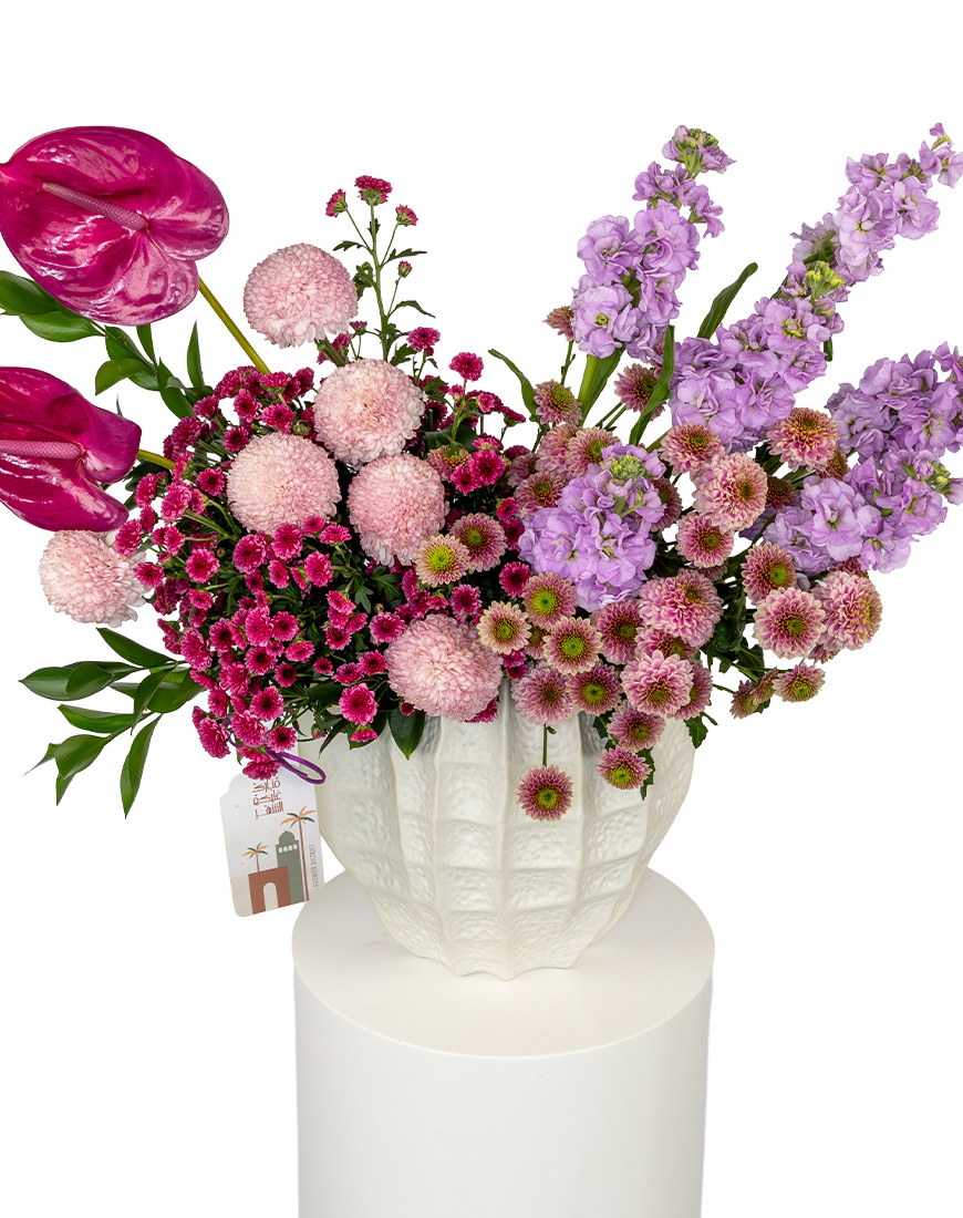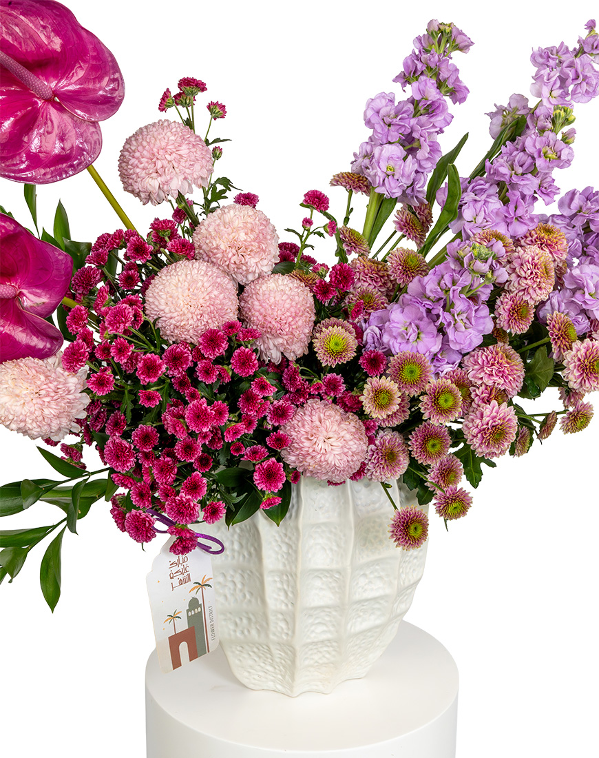 Inspired by lush garden compositions, this Ramadan Special Flower Vase brings together layered textures and rich colors in a ceramic vase. The mix of florals and greenery creates a striking centerpiece ideal for Ramadan gatherings and elegant interior styling.