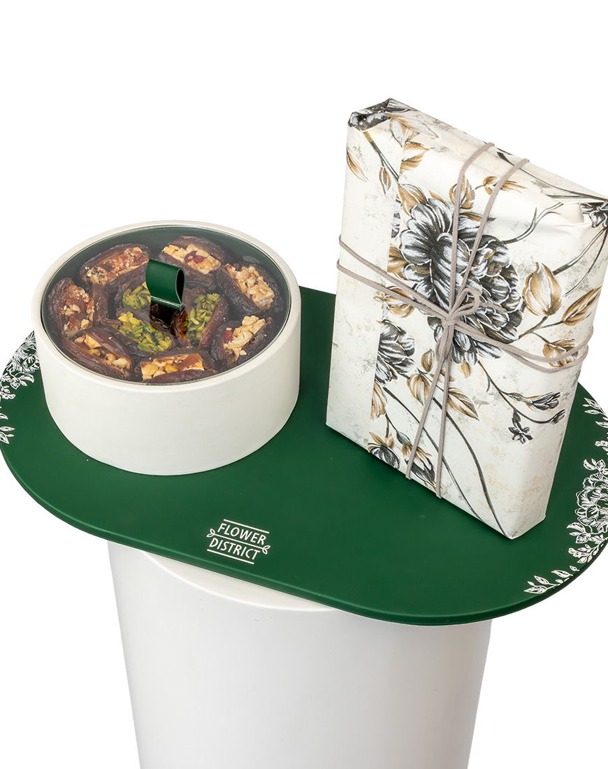 Designed to reflect serenity and devotion during the holy month, this Ramadan Special Flower Arrangement brings together a refined leather tray, dates, and the Quran in a thoughtful presentation. It offers a meaningful arrangement suited for spiritual spaces, Ramadan gifting, and moments of reflection.