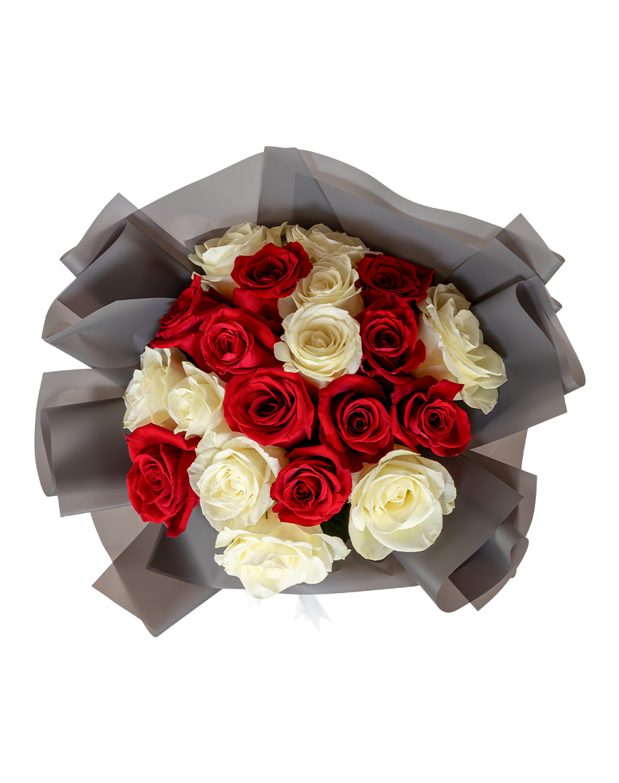 This Valentine's Day rose bouquet combines red and white roses to create a soft yet meaningful expression of love.